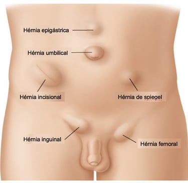 Nem toda hérnia é igual. Saber identificar o tipo ajuda a buscar o tratamento certo no momento certo. A seguir vou enumerar 4 principais hernias mas existem outras.